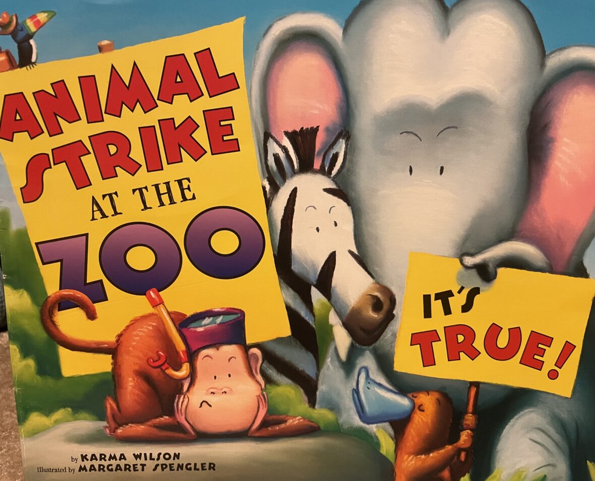 Have you ever heard of an animal strike? Me neither, but that’s what happens in this beautifully illustrated book by Karma Wilson. The zookeeper tries to get the animals to cooperate, but they are adamant as they hold up picket signs and continue to strike. When little Sue, who’s been waiting all year to visit the animals, comes to the zoo will the animals finally break or will Sue’s heart be broken?
